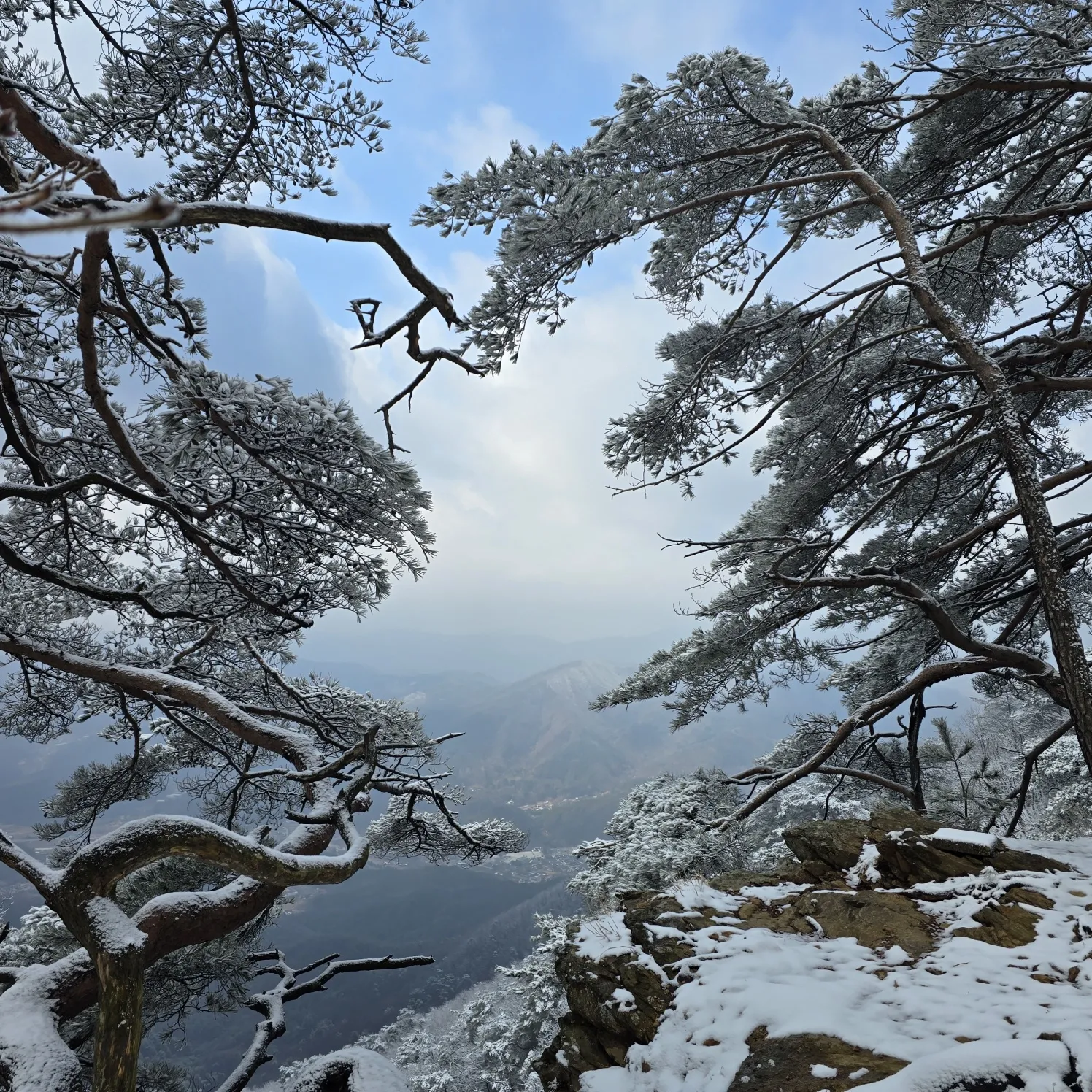 눈 쌓인 중원산의 풍경