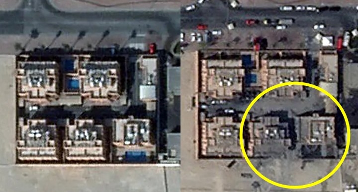 미국 상업위성 업체 플래닛랩스 PBC가 10일 촬영한 사진을 보면 같은 모양의 5채 건물 중 하단의 맨 오른쪽 건물이 가장 크게 파괴됐으며 그 옆 건물도 일부 피해를 보았다. 이는 지난 1월 같은 곳을 촬영한 위성 사진과 비교하면 확연한 차이가 드러난다. 곧 이스라엘이 하마스 정치국원이 머물던 건물을 정확히 공습한 것으로 보이는 대목. 이스라엘군은 이날 총 15대의 전투기를 동원해 단일 표적에 대한 정밀 무기 10발을 발사했다고 밝혔다. 다만 정확히 어떤 무기가 사용됐는지는 공개하지 않았다.