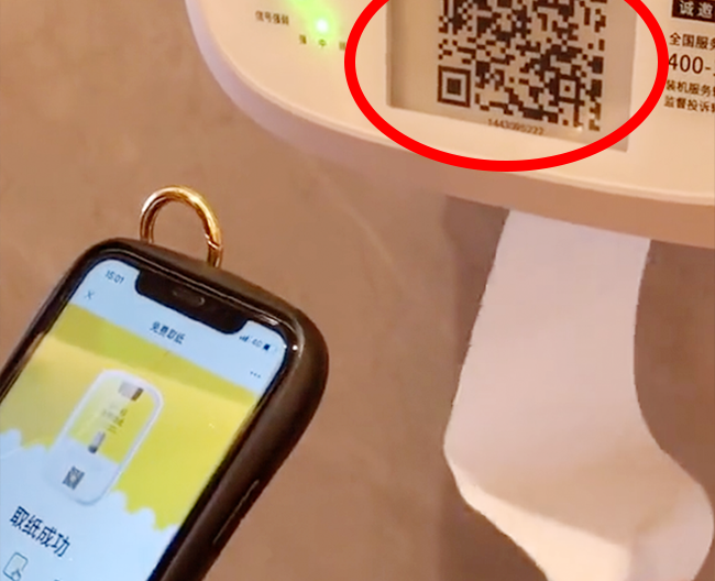 중국 일부 공중화장실에서 큐알을 스캔해야 휴지가 나오는 디스펜서가 등장했습니다.