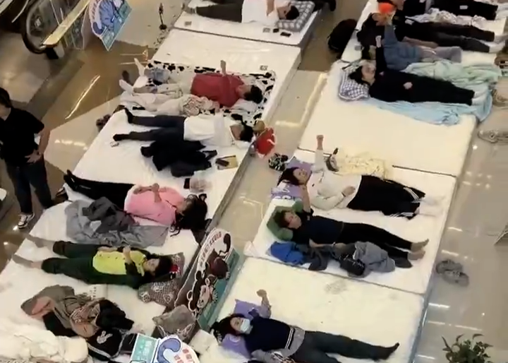 이 대회는 지난 15일(현지시각) 내몽골 자치구 바오터우시의 한 쇼핑몰에서 개최됐습니다. 참가자 240명이 바닥에 깔린 매트리스 위에서 얼마나 오래 누워 있을 수 있는지 겨뤘는데요.