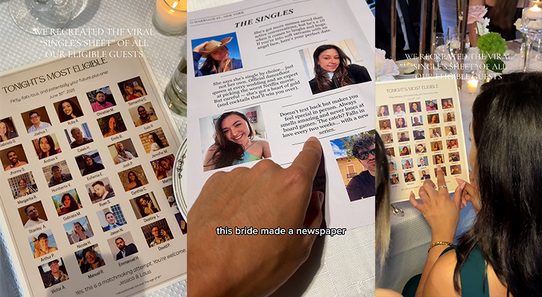 ‘싱글즈 시트’는 솔로인 하객들 이름과 사진을 담은 안내서를 제작해, 자연스럽게 서로를 소개하고 새로운 인연을 만들 수 있도록 기획된 이벤트인데요.
