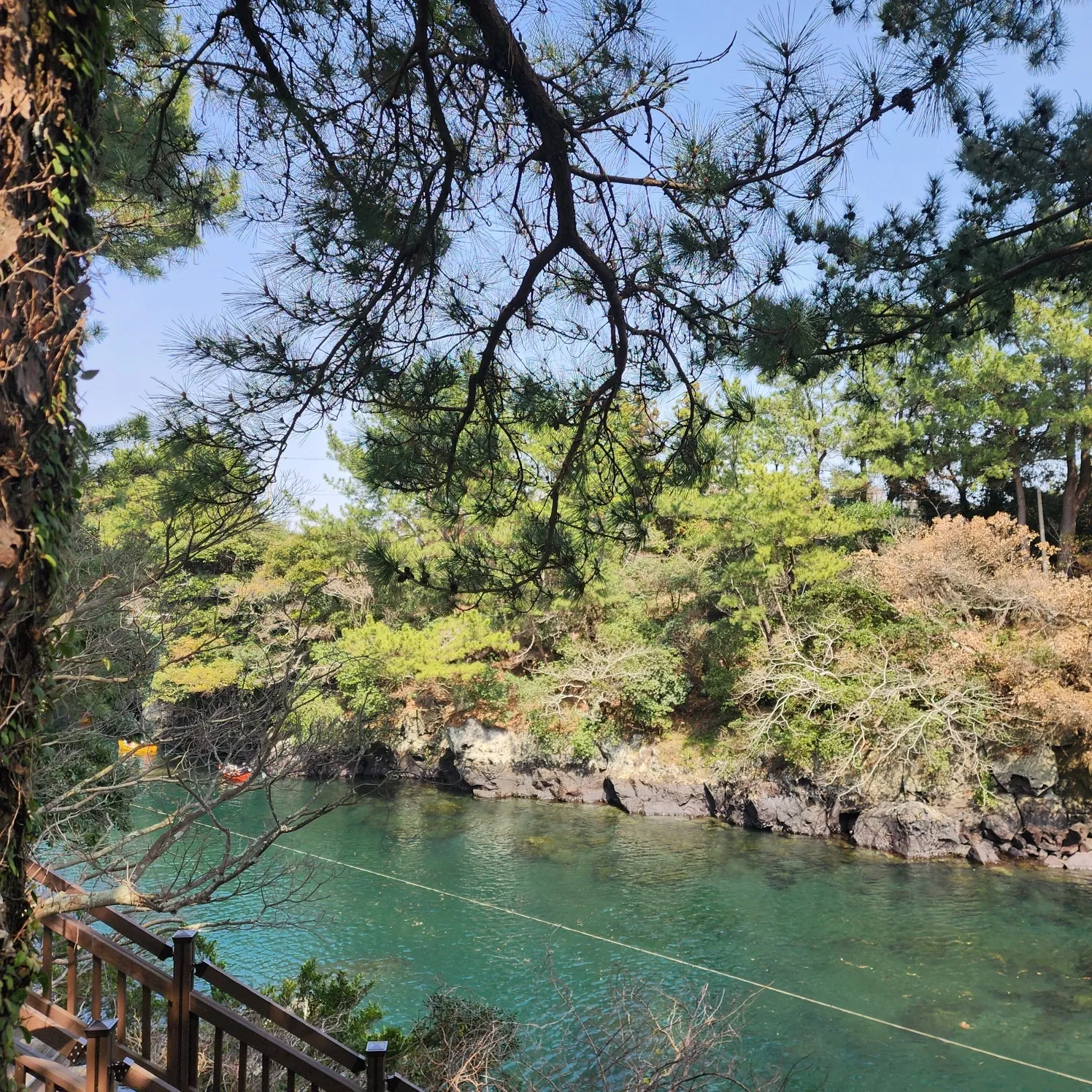 이곳을 더욱 특별하게 만드는 체험은 제주 전통 목선 ‘테우’다. 효돈리 마을 청년회에서 운영하는 테우는 물에 절인 나무를 엮어 만든 뗏목형 배로 별도의 동력 없이 사람의 힘과 바람, 물살에 의지해 움직인다. 약 30분간 이어지는 짧은 승선이지만 쇠소깍의 전설과 물길을 따라 천천히 흘러가는 경험은 이곳에서만 가능한 기억으로 남는다. 쇠소깍은 제주 올레길 6코스의 출발점이자 5코스의 종착지다. 바다와 마을, 숲길을 지나 걷던 길이 이곳에서 물길로 이어지며 자연스럽게 마무리된다. 걷는 여행자가 잠시 걸음을 멈추고 풍경을 내려다보기에, 쇠소깍은 올레길 전체에서도 유난히 인상적인 쉼표 같은 존재다.